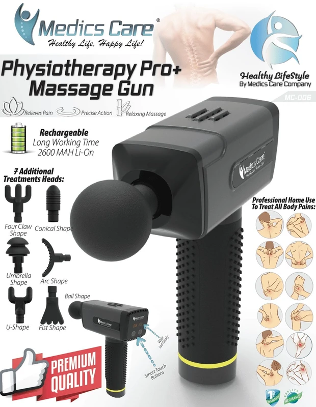 אקדח עיסוי פיזיותרפי לטיפול בכאבי שרירים ורקמות ביתי ומקצועי מבית Medics Care