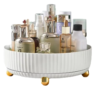 ארגונית איפור מסתובבת בעיצוב מודרני, מציעה פתרון אחסון יעיל ונוח לכל אחסון מוצרים ומסתובבת ב-360 מעלות.