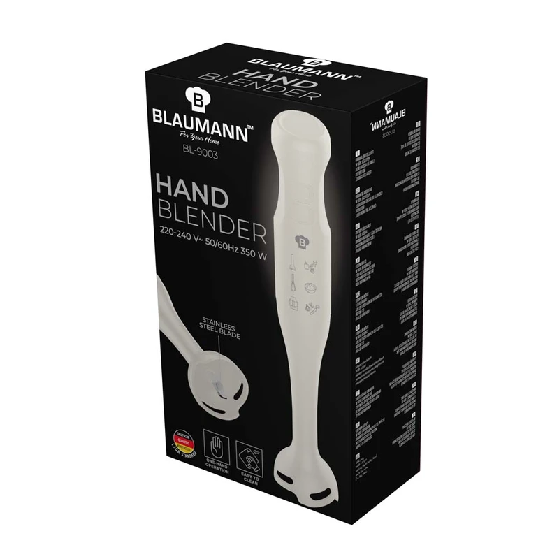 בלנדר יד BL9003 מציע שילוב מושלם בין עוצמה, נוחות ועיצוב אלגנטי. מתאים להכנת מרקי קרם, שייקים ומחיות לתינוק במהירות ובקלות. הבלנדר כולל להב נירוסטה חד, פונקציית טורבו וראש נשלף לניקוי קל, ומאפשר הפעלה ביד אחת לשימוש יומיומי נוח במטבח המודרני.
