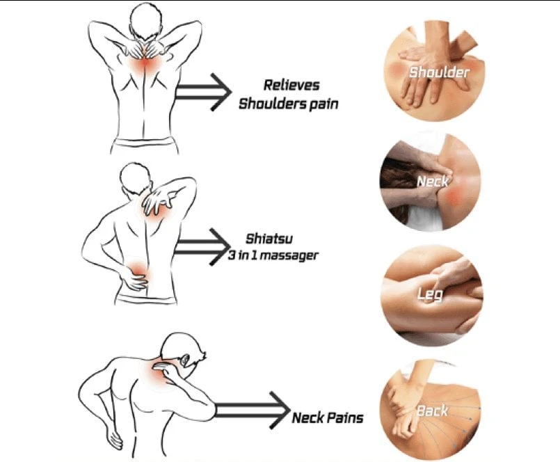 • מכשיר העיסוי נועד לשימוש בכמה אזורי גוף שונים כגון: