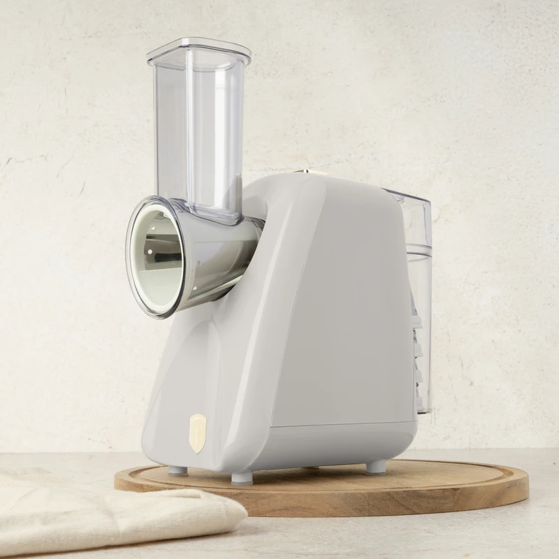 עוזר המטבח המושלם של Berlinger Haus להכנת ירקות, פירות, גבינות ועוד – בקלות ובמהירות. עם חמישה ראשי חיתוך שונים ועיצוב קומפקטי בצבע קרם, זהו פתרון אלגנטי לכל מטבח מודרני.