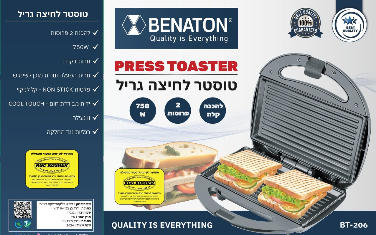 טוסטר לחיצה נירוסטה דגם BT 206