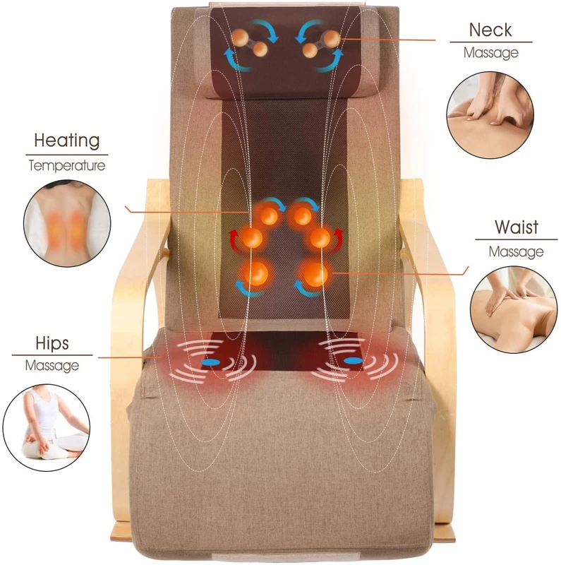 - 10 פונקציות ייחודית לעיסוי מקצועי:1. עיסוי גב מלא2. עיסוי גב עליון3. עיסוי גב תחתון4. עיסוי בנקישות Tapping5. עיסוי בלחיצות שיאצו Shiatsu6. עיסוי צוואר שיאצו7. עיסוי עמוק נקודתי8. עיסוי עם חימום INFRARED לטיפול בכאב9. עיסוי רטט מקצועי מפנק10. פעולת עיסוי אוטמטית