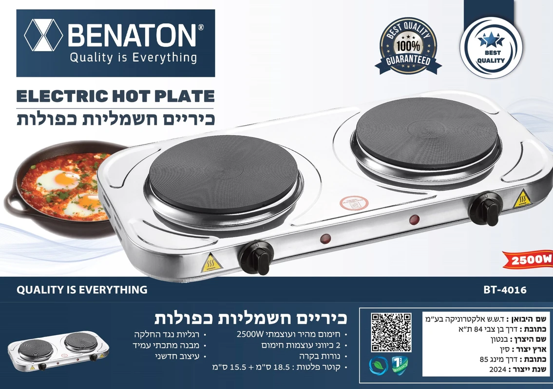 גודל פלטות: 18.5 ס"מ ו-15.5 ס"מ – התאמה למגוון רחב של סירים ומחבתות שונים.