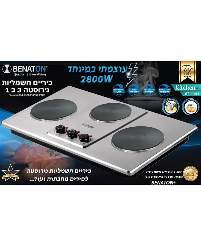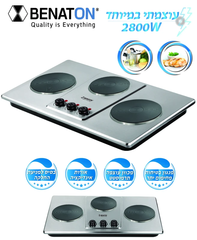 - מס׳ 1 כיריים חשמליות נירוסטה מבית מוצרי האיכות של בנטון BENATON