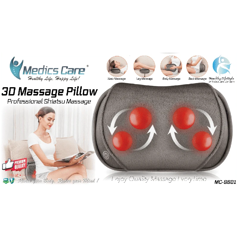 כרית עיסוי שיאצו בטכנולוגיית 3D הטובה בעולם MC-9601 מבית Medics-Care