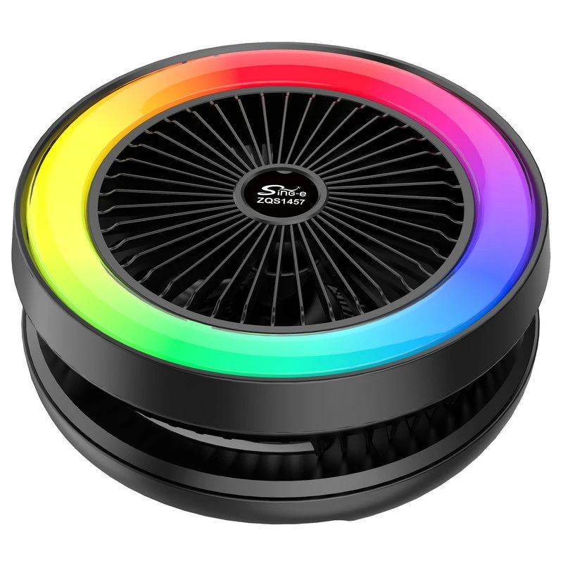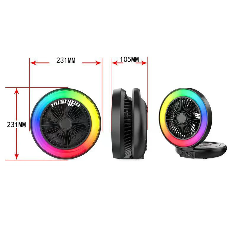 מאוורר שולחני עוצמתי בעיצוב ייחודי עגול עם תאורת LED צבעונית ומערכת רמקול מובנית, לחוויית קירור מהנה עם מוזיקה – בכל מקום!
