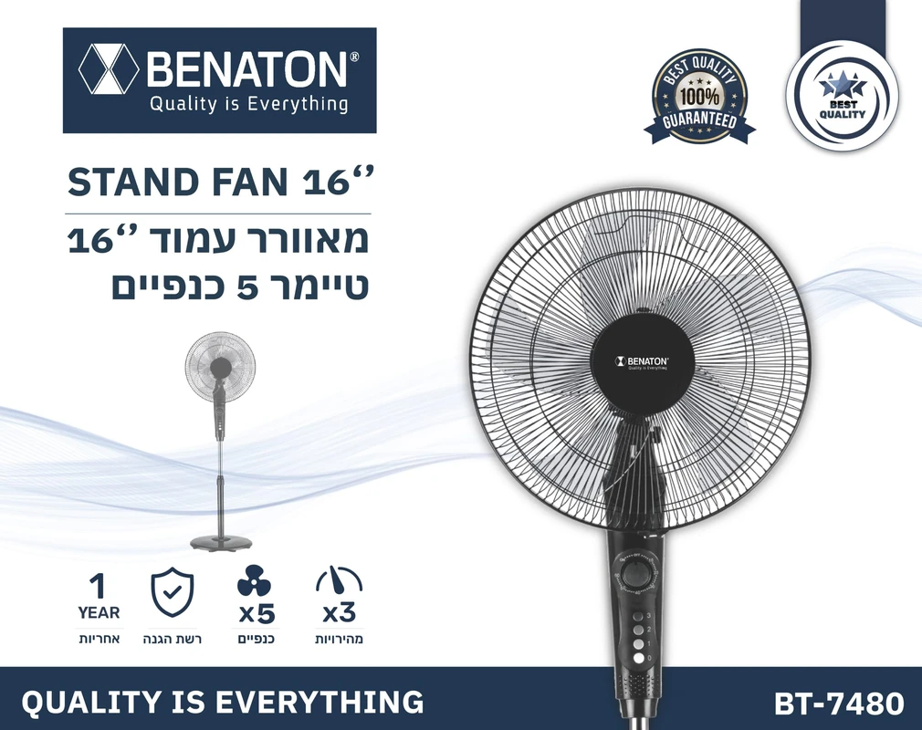 מאוורר 16" טיימר 5 כנפיים BENATON BT-7480