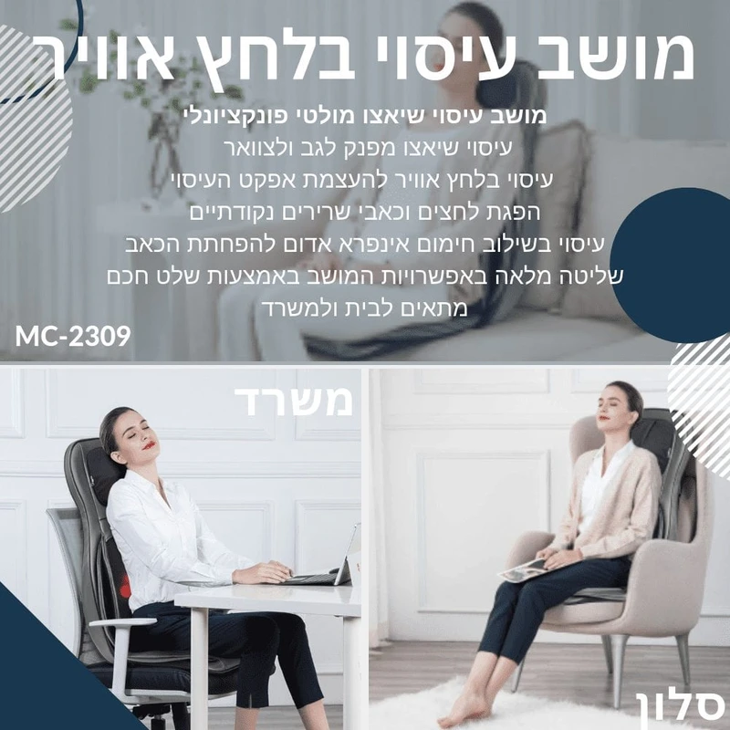 מולטי מושב עיסוי שיאצו מולטיפונקציונלי + כריות אוויר MC-2309 מבית Medics Care