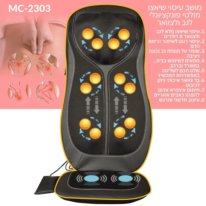 - מושב עיסוי מקצועי לגב ולצוואר 8 רולרים 4 ב -1