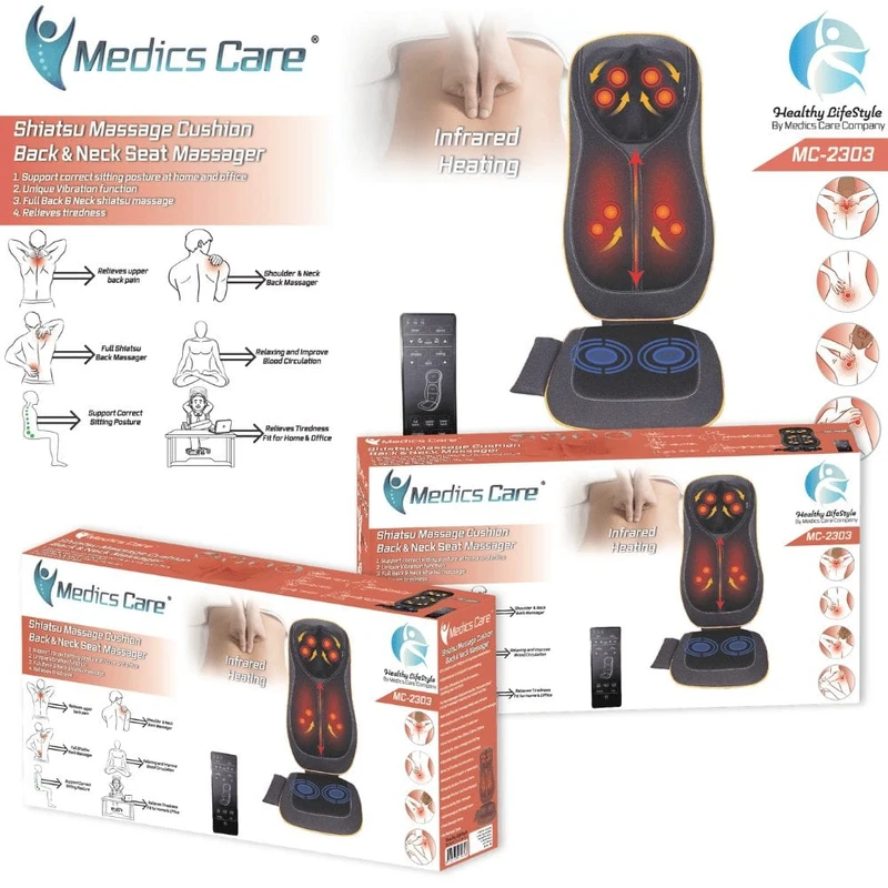מושב עיסוי שיאצו מולטי פונקציונלי לגב ולצוואר MC-2303 מבית Medics Care