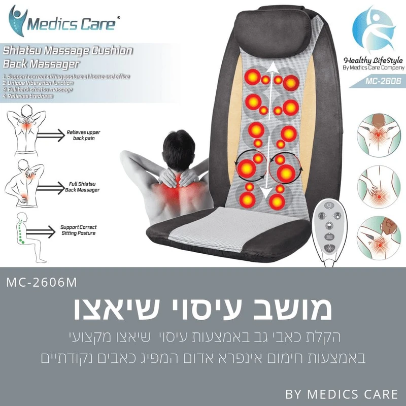 מושב עיסוי שיאצו עמוק 3ב-1 MC-2606M מבית Medics Care