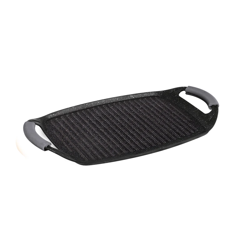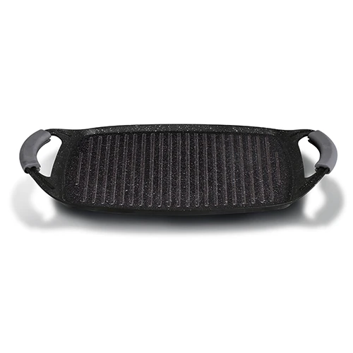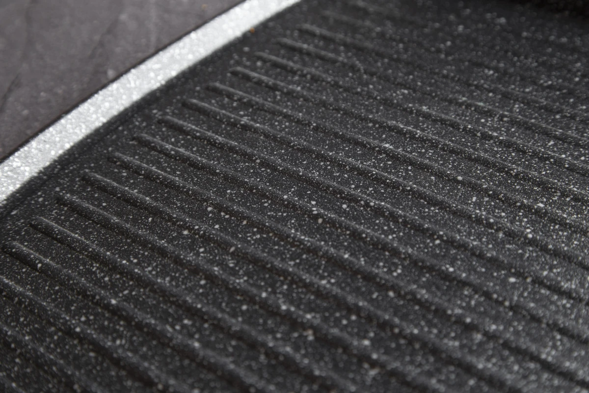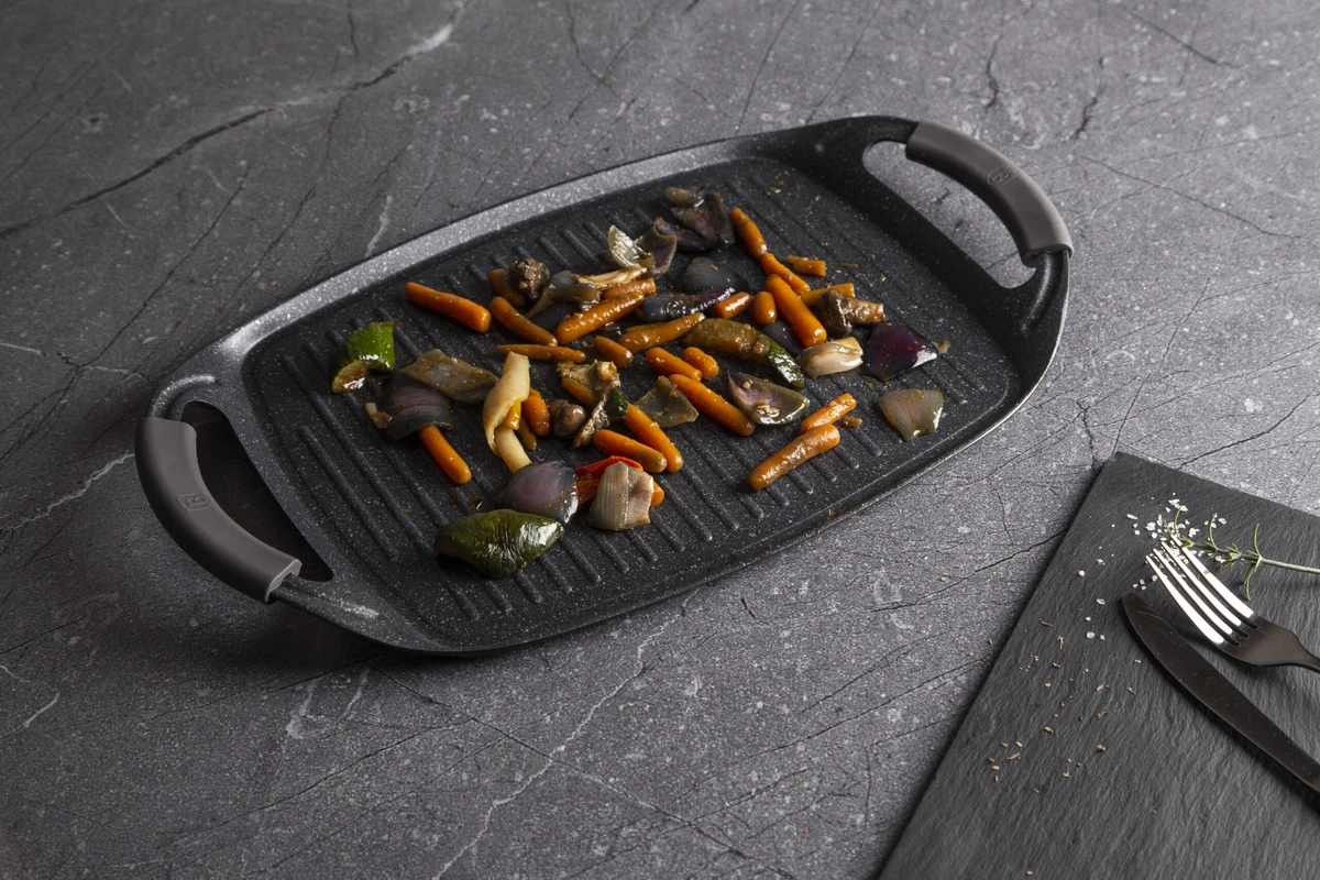 מחבת גריל מלבנית גדולה בציפוי שיש – כולל ידיות סיליקון | Dark Grey