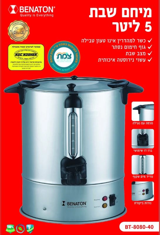 מיחם לשבת 5 ליטר איכותי BT-8080-40 BENATON ללא טבילה