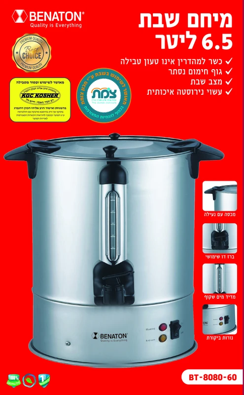 מיחם לשבת 6.5 ליטר איכותי BT-8080-60 BENATON ללא טבילה