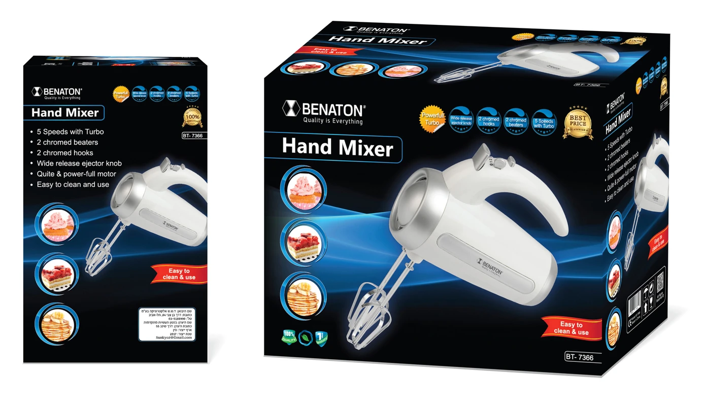 - מיקסר מקצועי בעיצוב ארגונומי נוח במיוחד ופעולה עוצמתית ושקטה מבית BENATON