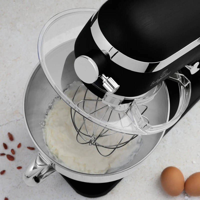 מיקסר עומד מקצועי ועוצמתי בעיצוב יוקרתי מסדרת Matte Black, המשלב גוף יצוק מאלומיניום עם רכיבי נירוסטה איכותיים לביצועים גבוהים ועמידות לאורך זמן. המיקסר מצויד במנוע חזק במיוחד בהספק 1800W, עם תכנון ייעודי להפחתת רעש, ומתאים לעבודה אינטנסיבית במגוון משימות אפייה ובישול.