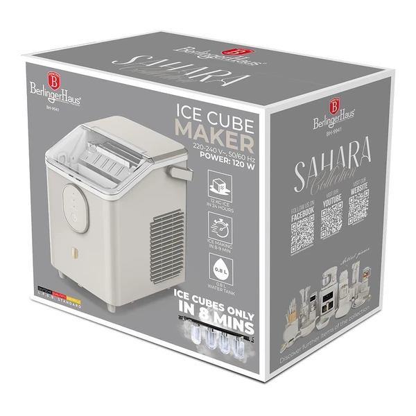 מכונת קרח מעוצבת מסדרת Sahara המשלבת ביצועים מהירים עם עיצוב מודרני ואלגנטי בגוון קרם יוקרתי. פתרון מושלם להכנת קוביות קרח טריות תוך דקות — בבית, במשרד, באירוח או במסיבות.