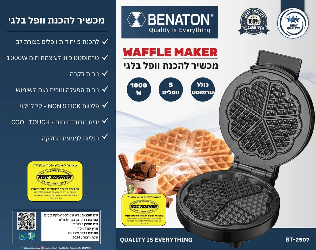 מכשיר להכנת וופל בלגי – לב BT-2507