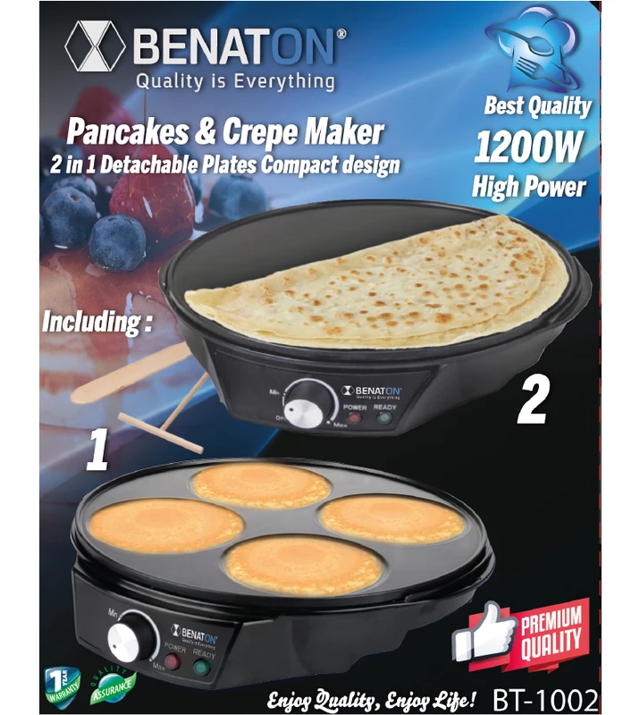 מכשיר להכנת פנקייקים + קרפ 2 ב-1 מולטיפונקציונלי – משטח נתיק קל לניקוי BT-1002