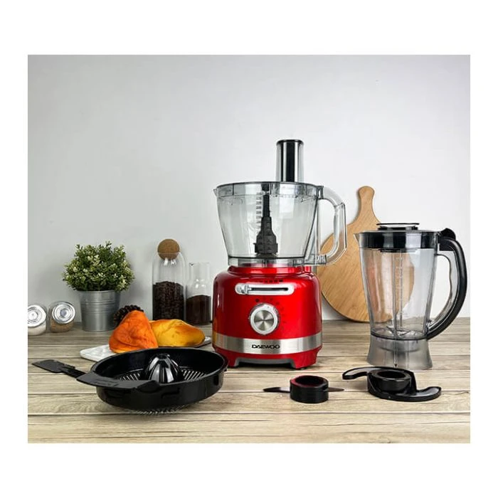 -אביזרים (להב קוצץ S/S • להב בצק מפלסטיק • מסחטת הדרים • קערת פלסטיק מדורגת בנפח 3 ליטר עם מרית • בלנדר מדורג בנפח 1.75 ליטר)