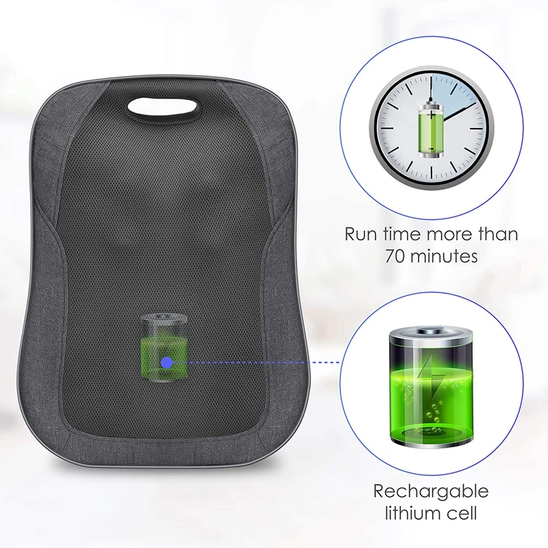 - משענת עיסוי נטענת ונועדה לשימוש בכל מקום שתבחרו – בבית, במשרד, ברכב ועוד