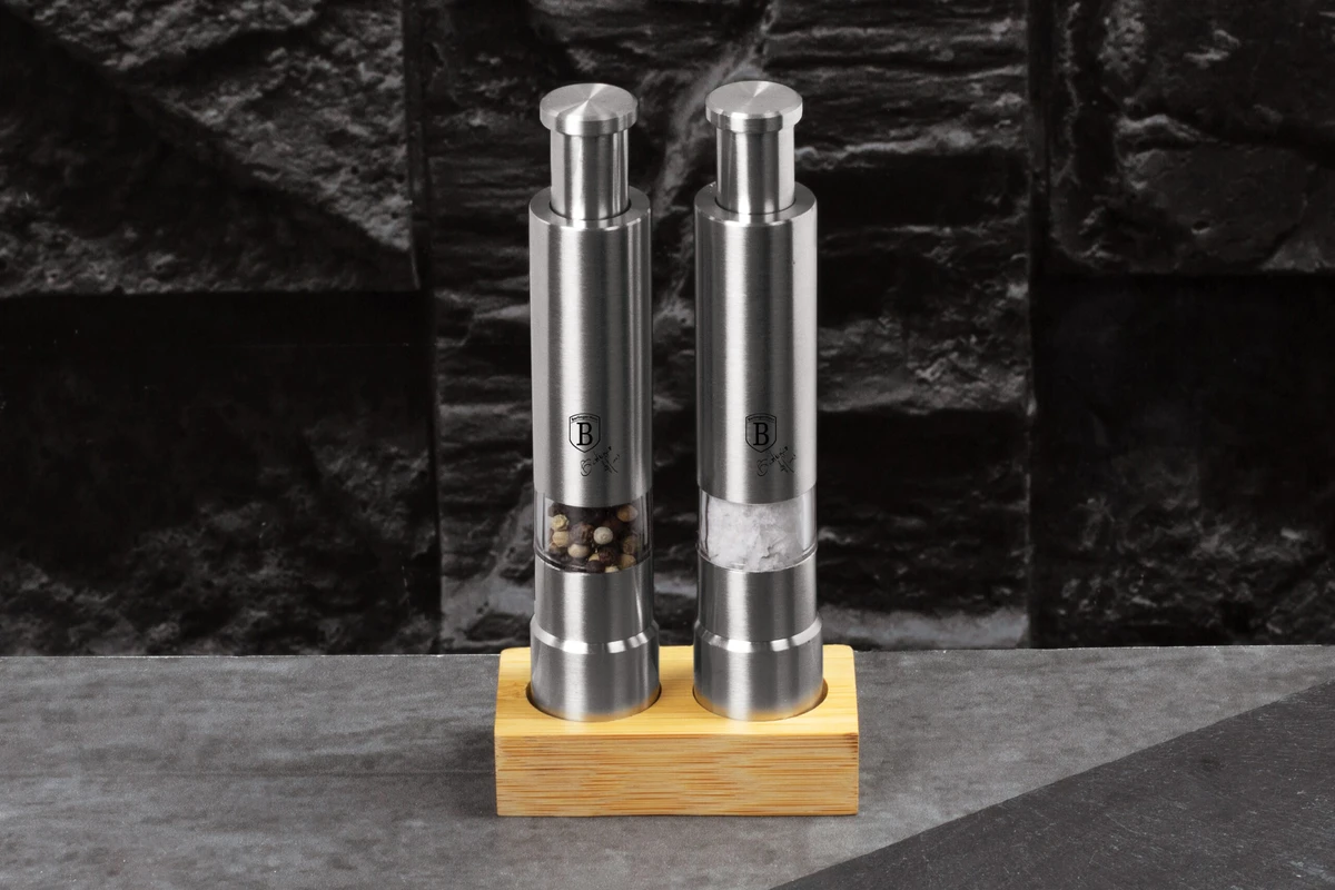 סט זוגי מלח ופלפל נירוסטה +מעמד עץ יוקרתי BH-7783