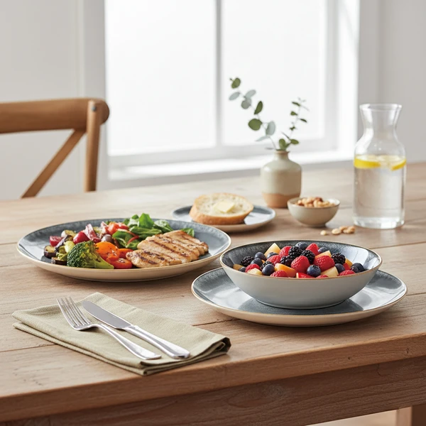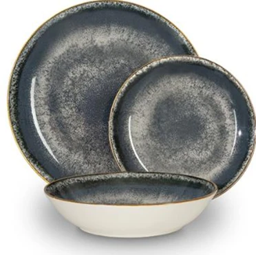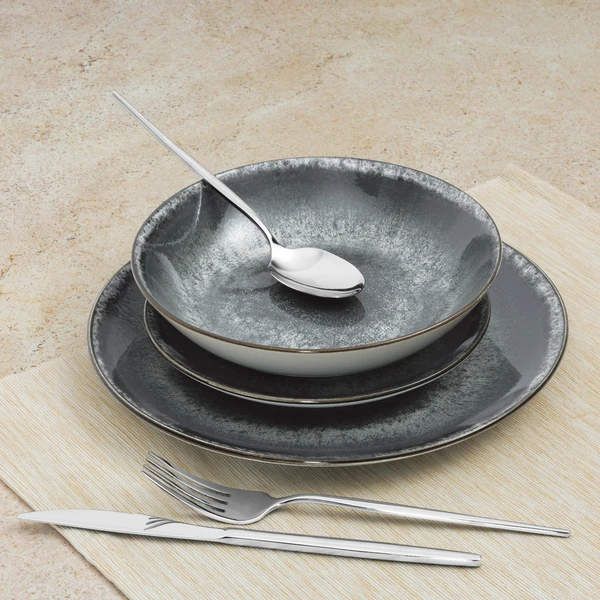 סט כלי אוכל יוקרתי עשוי פורצלן איכותי בגוון אפור אלגנטי עם מראה מעודן ומודרני, המשתלב בצורה מושלמת בכל סגנון מטבח ושולחן. הגוון האפור יוצר תחושה נקייה, רגועה ויוקרתית — אידיאלי לשימוש יומיומי לצד אירוח מוקפד ברמה גבוהה.