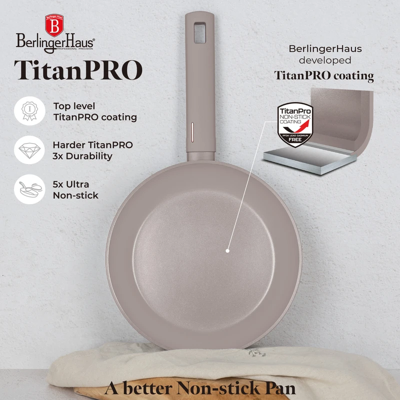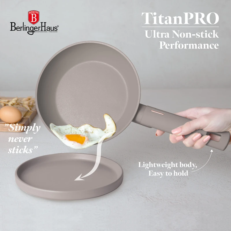 סט מחבתות איכותי מבית Berlinger Haus בעיצוב מינימליסטי ובגימור מט יוקרתי. כולל שלוש מחבתות עמידות בציפוי TitanPro לבישול בריא, קל ונוח.