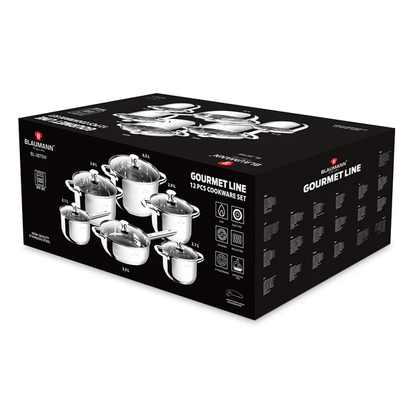 סט סירים ומחבתות נירוסטה 12 חלקים עם מכסים BL3875W Blaumann