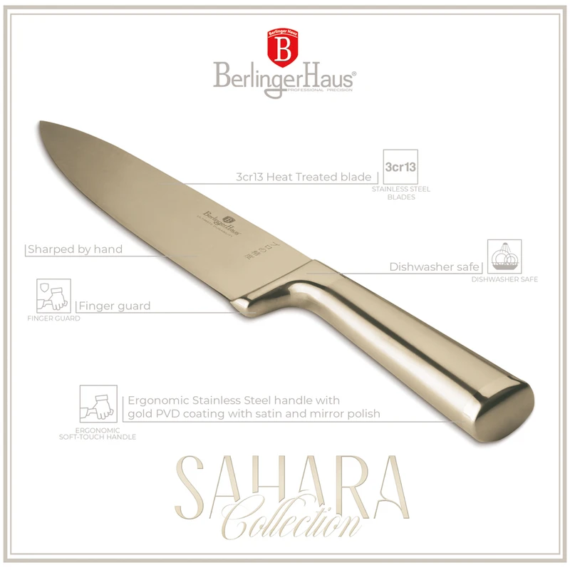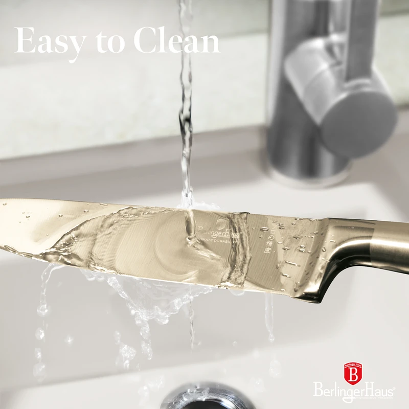 סט סכינים זהב עם מעמד עץ אקציה Berlinger Haus BH3125