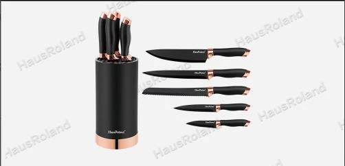 סט 5 סכינים איכותי + מעמד רוז גולד HR608-1