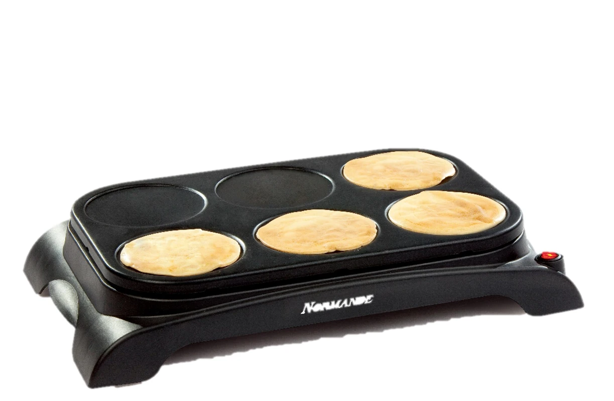 במכשיר שישה שקעים להכנת פנקייק מושלם, פלטה קלה לניקוי בזכות ציפוי NON STICK, עצמה גבוהה W1000 להכנה מהירה.