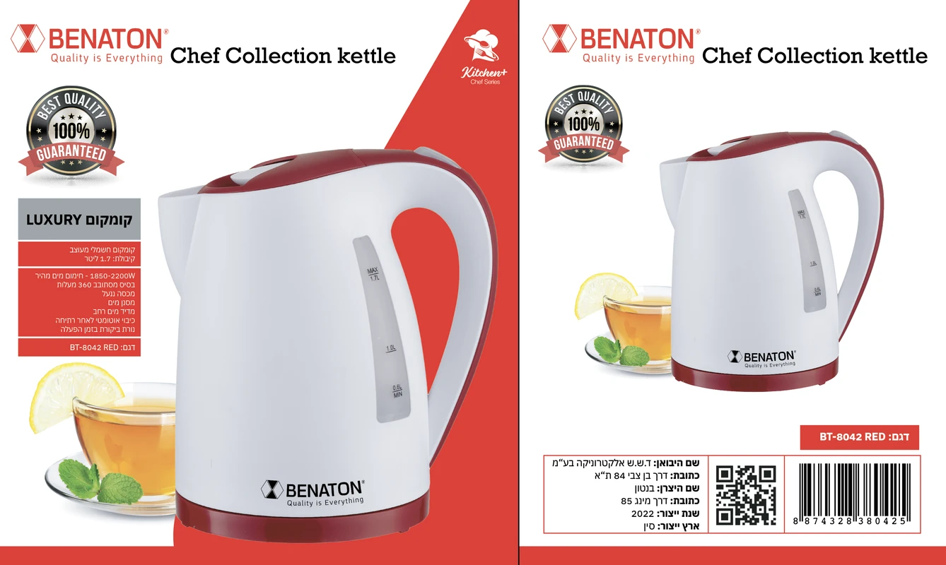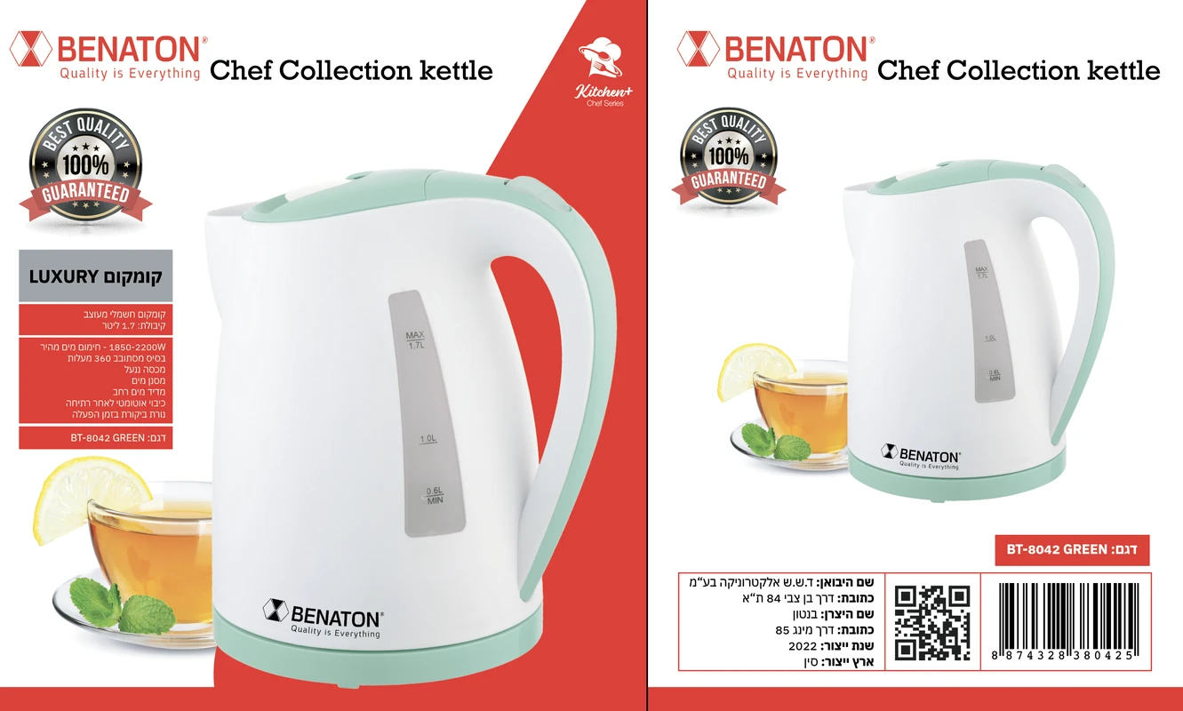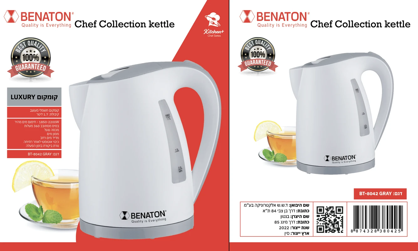 קומקום איכותי 1.7 ליטר מבית BENATON BT-8042