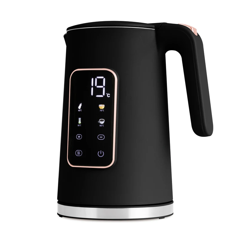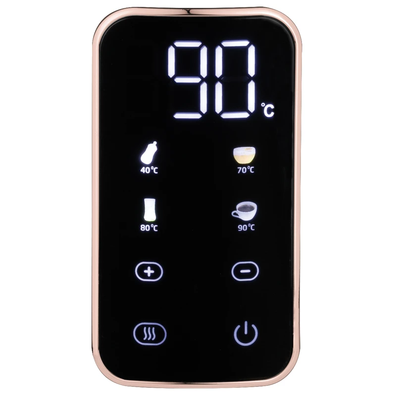 עיצוב יוקרתי בשחור עם נגיעות רוז גולד, תצוגה דיגיטלית חכמה ושליטה מלאה בטמפרטורה – להכנת תה, קפה ומשקאות חמים בדיוק כפי שאת/ה אוהב/ת.