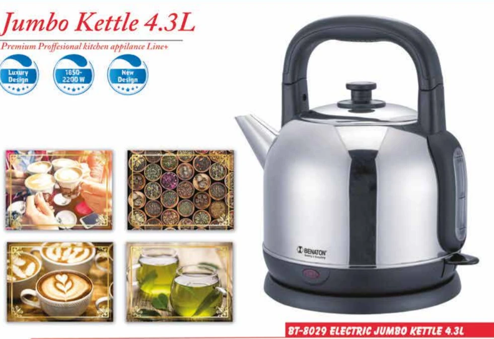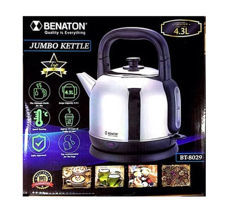 קומקום חשמלי ג'מבו 4.3 ליטר עשוי נירוסטה מבית BENATON דגם BT-8029