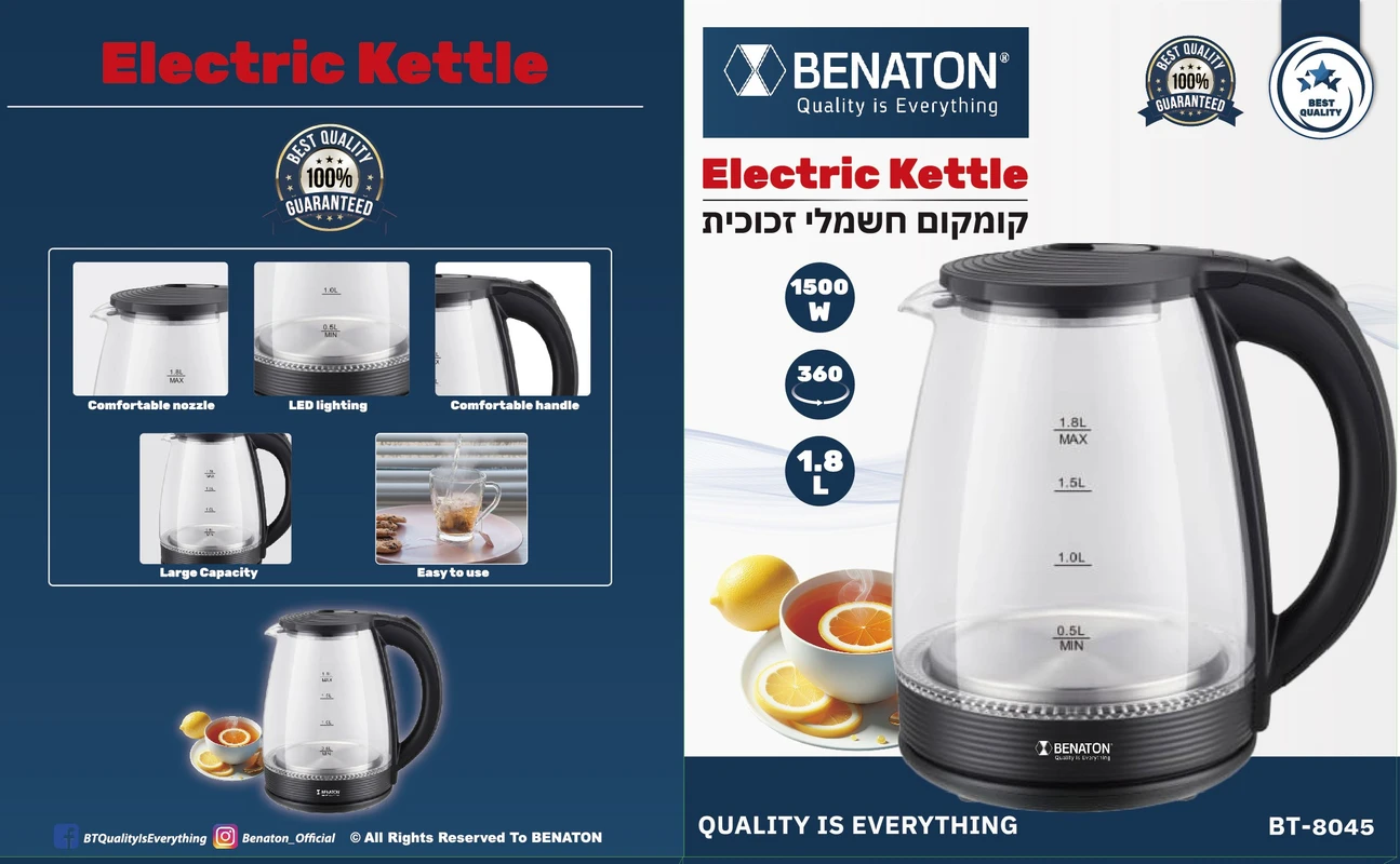 קומקום חשמלי זכוכית BENATON BT-8045