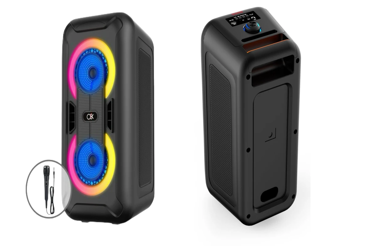 רמקול עוצמתי עם שני רמקולים בקוטר 4 אינץ’, תבנית ייצור פרטית (Private Mold), ותאורת RGB צבעונית שמכניסה אווירה – אידיאלי למסיבות, אירועים, פיקניקים ואפילו קריוקי.