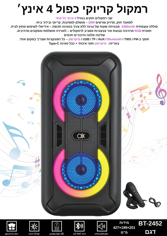 רמקול קריוקי Bluetooth עוצמתי 4X2" אינץ’ BT-2452