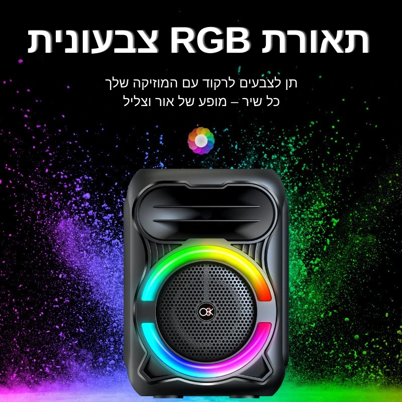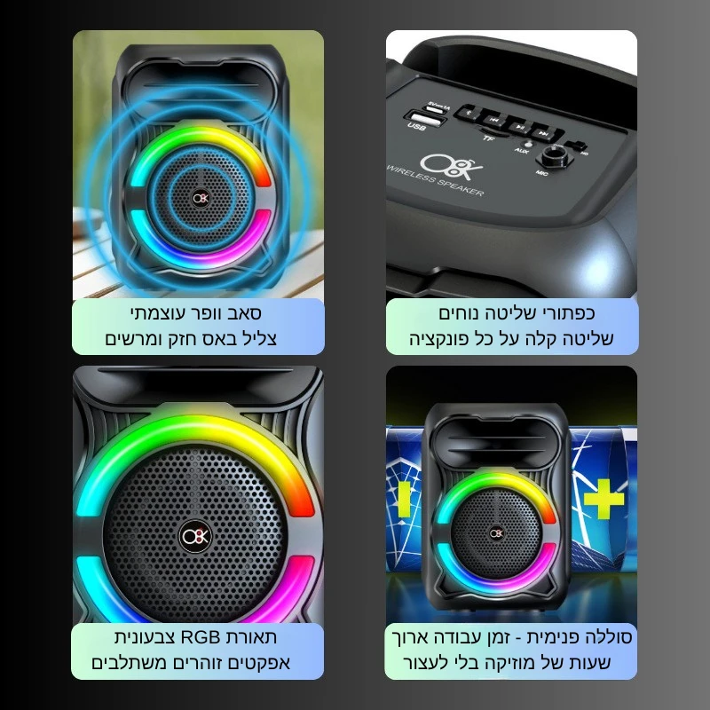תמיכה מלאה: USB / TF / FM / AUX / TWS / Bluetooth / MIC / RGB