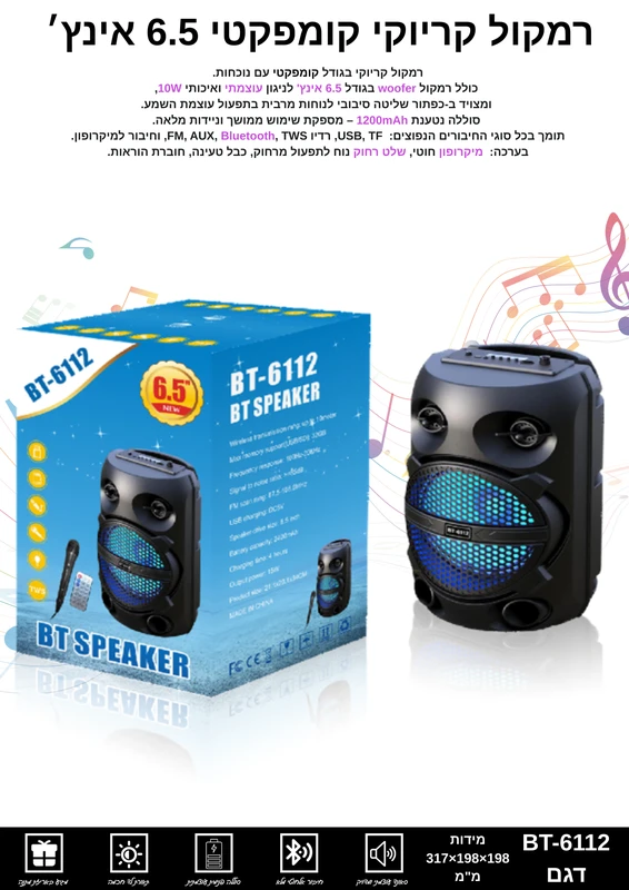 רמקול 6.5 אינץ’ Bluetooth BT-6112
