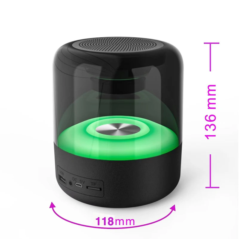 רמקול מעוצב בגימור יוקרתי עם כיפת תאורה שקופה מתחלפת, שילוב מדויק של מוזיקה וסטייל. מתאים לבית, למשרד או כפינוק מתנה!