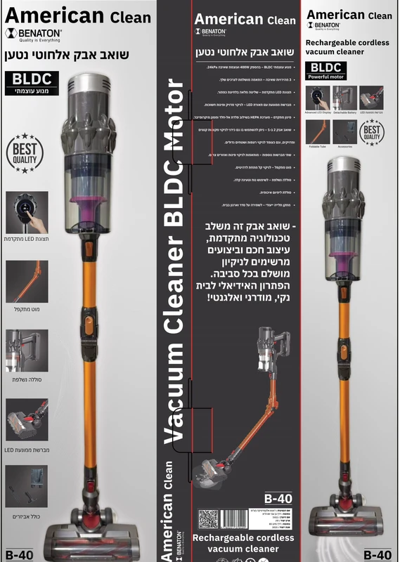 שואב אבק אלחוטי נטען עוצמתי B-40 BENATON