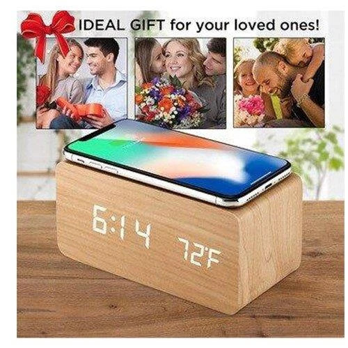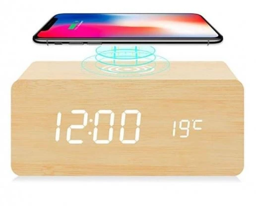 שעון קוביית עץ -טעינה אלחוטית NY-3791
