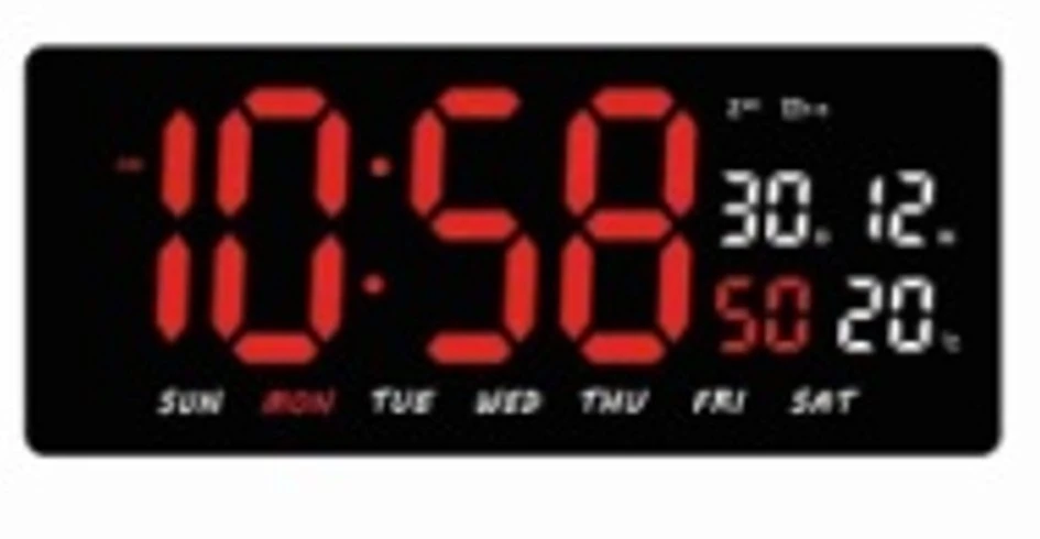 שעון קיר דיגיטלי בעיצוב מודרני עם תצוגת LED גדולה וברורה, זמין בצבעי אדום או כחול לבחירה.