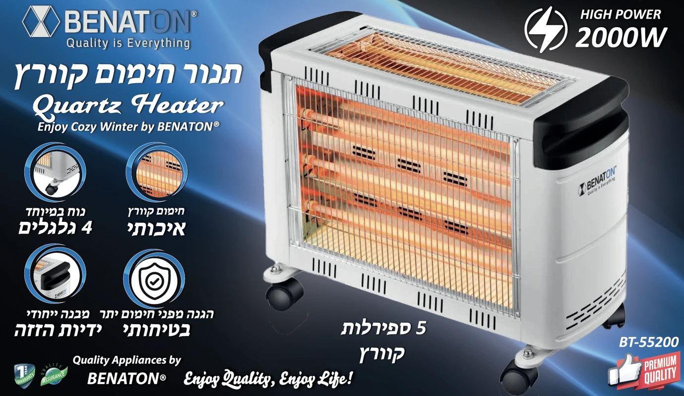 תנור חימום 5 ספירלות קוורץ מבית BENATON דגם BT-55200