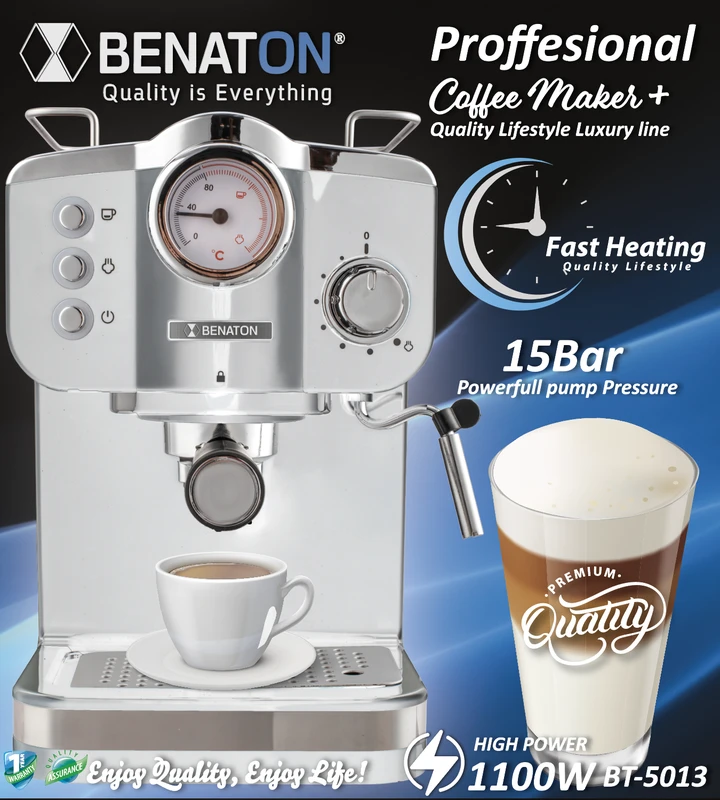 BT-5013 מכונת קפה ביתית מקצועית 15Bar + מד לחץ ומקציף מבית BENATON