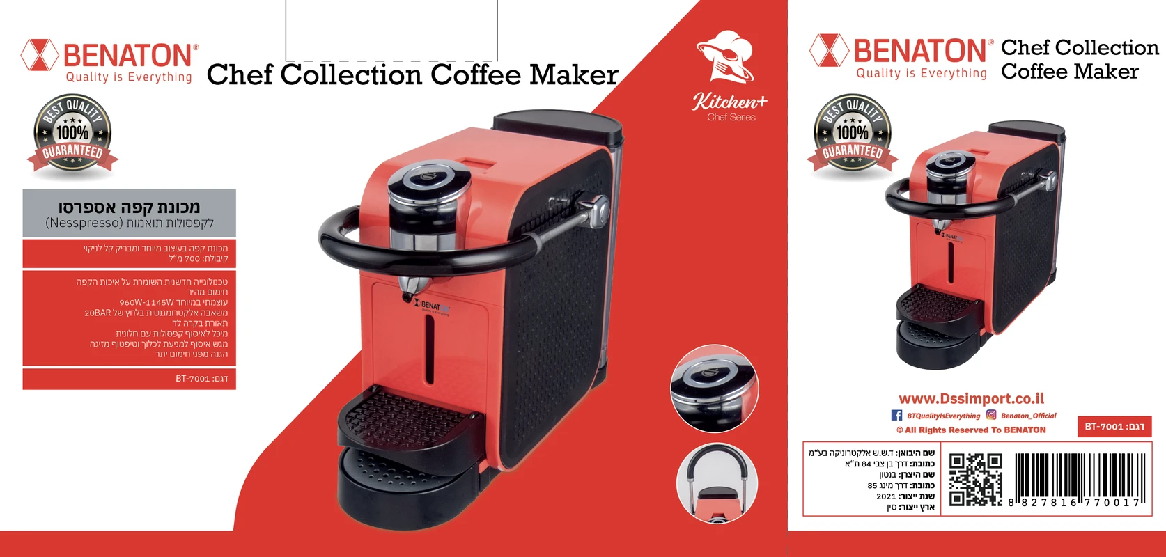 BT-7001 מכונת אספרסו קפסולות תואם Nesspresso