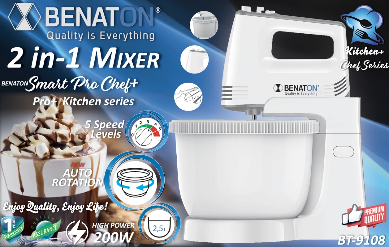 - מיקסר ידני + קערה איכותי מבית BT 9108 BANETON